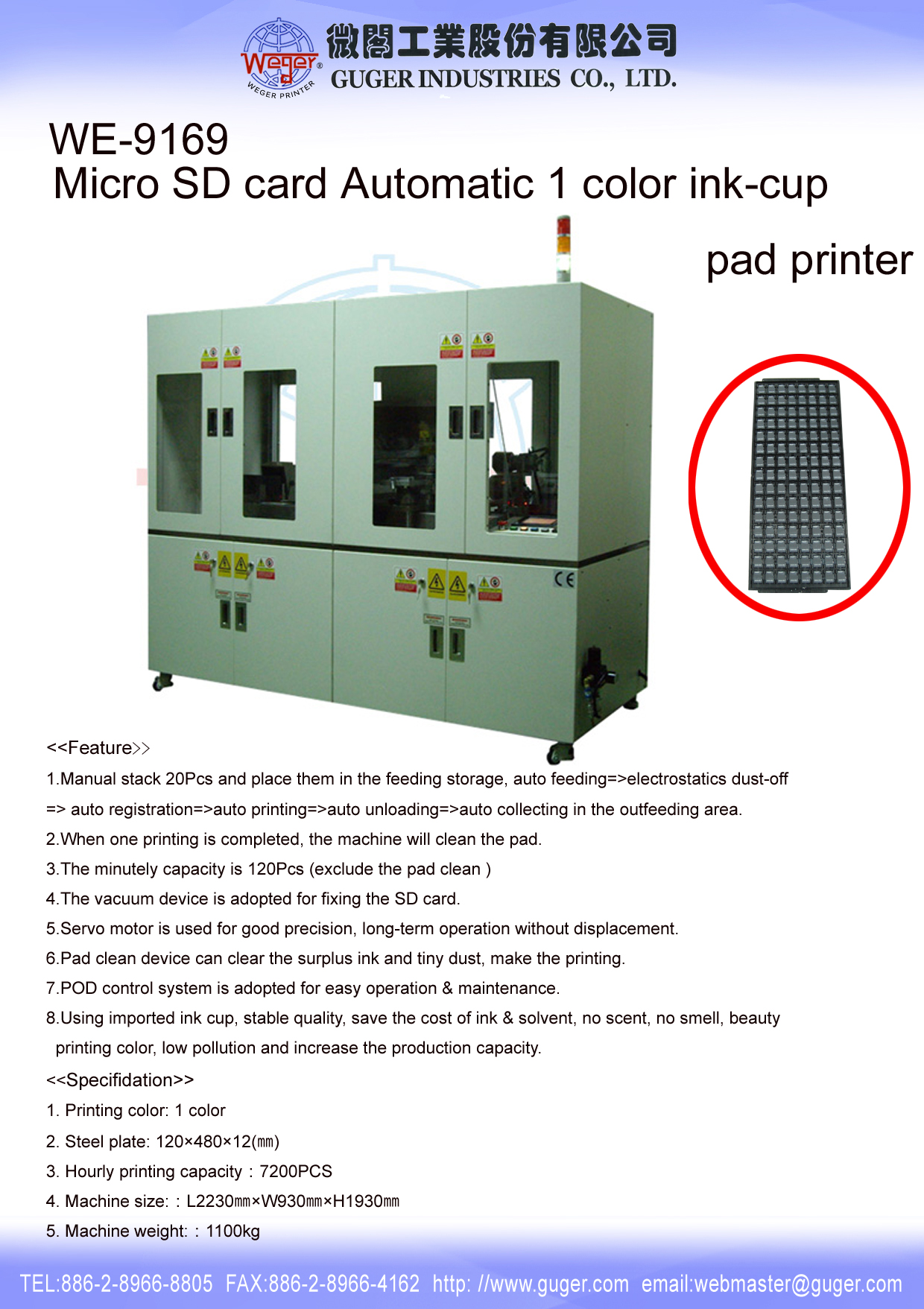 Micro SD card automatic 1 color ink-cup pad printer