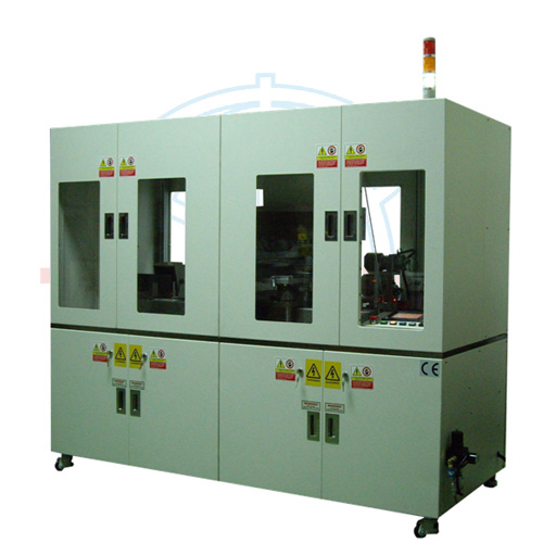 Manual stack 20Pcs and place them in the feeding storage, auto feeding=>electrostatics dust-off=> auto registration=>auto printing=>auto unloading=>auto collecting in the outfeeding area